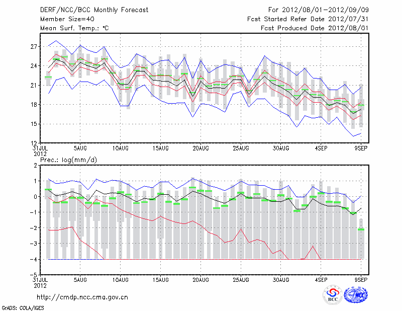 乌兰浩特 (LAT:46.08 LON:122.05) 2012-08-01        预测