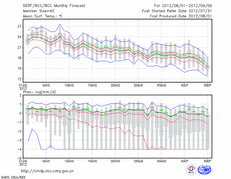 鸡 西 (LAT:45.28 LON:130.95) 2012-08-01        预测