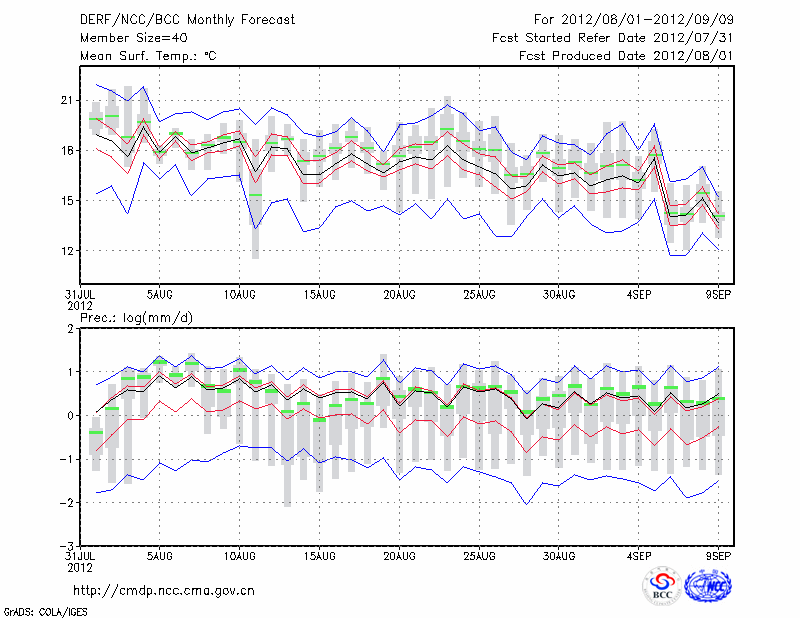 西 宁 (LAT:36.62 LON:101.77) 2012-08-01        预测