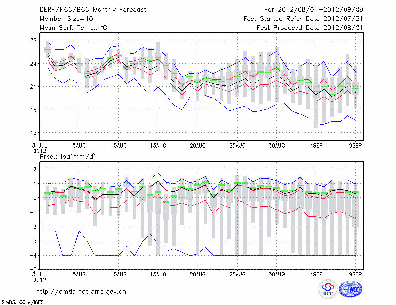 延 安 (LAT:36.60 LON:109.50) 2012-08-01        预测