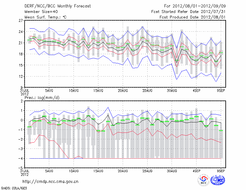 锡林浩特 (LAT:43.95 LON:116.07) 2012-08-01        预测
