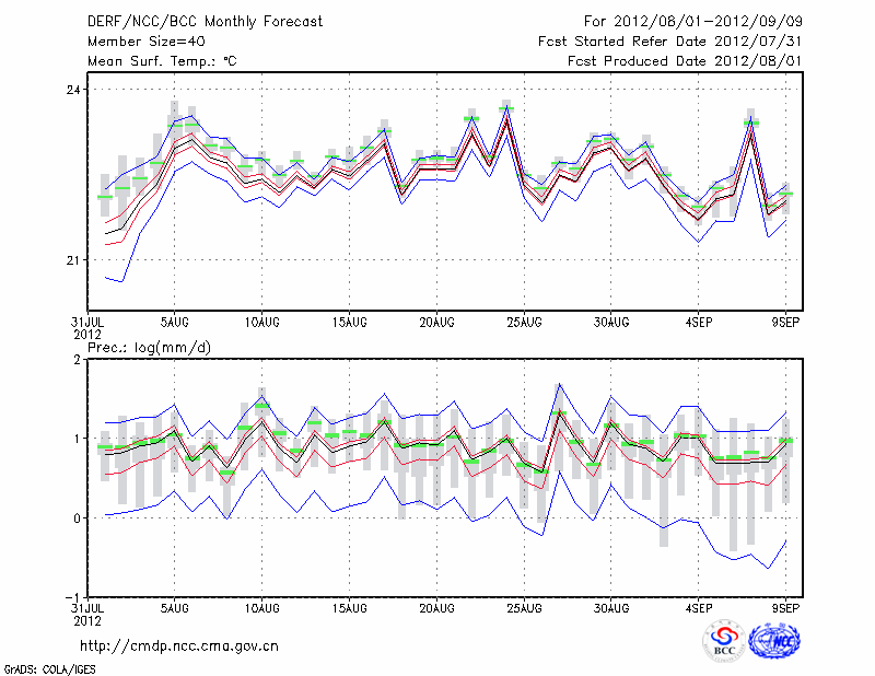 临 沧 (LAT:23.95 LON:100.22) 2012-08-01        预测