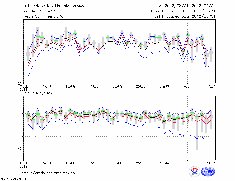 蒙 自 (LAT:23.38 LON:103.38) 2012-08-01        预测