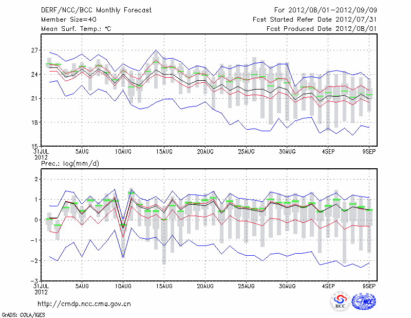 天 水 (LAT:34.58 LON:105.75) 2012-08-01        预测