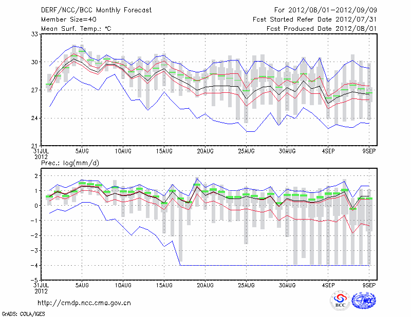 钟 祥 (LAT:31.17 LON:112.57) 2012-08-01        预测