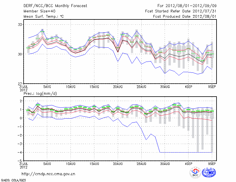 赣 州 (LAT:25.85 LON:114.95) 2012-08-01        预测