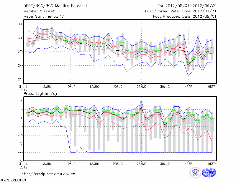 蚌 埠 (LAT:32.95 LON:117.37) 2012-08-01        预测