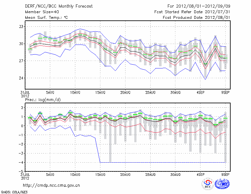 杭 州 (LAT:30.23 LON:120.17) 2012-08-01        预测