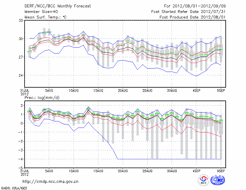 屯 溪 (LAT:29.71 LON:118.28) 2012-08-01        预测