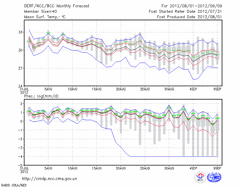 南 昌 (LAT:28.60 LON:115.92) 2012-08-01        预测
