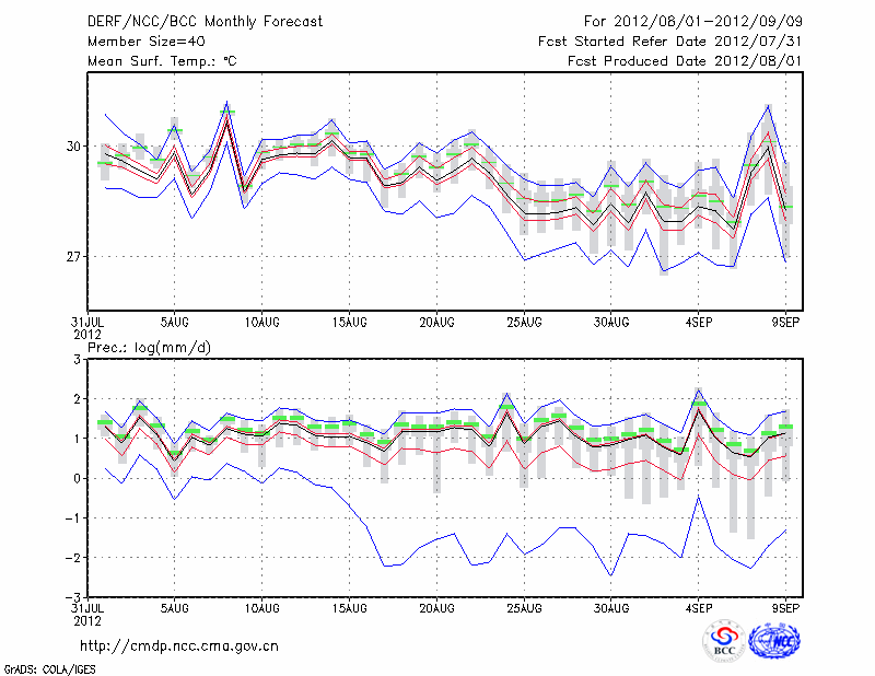 温 州 (LAT:28.02 LON:120.67) 2012-08-01        预测