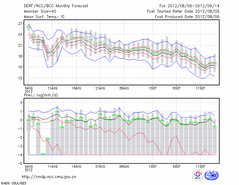 哈 尔 滨 (LAT:45.75 LON:126.77) 2012-08-06        预测