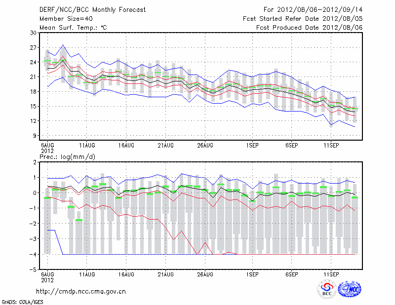 鸡 西 (LAT:45.28 LON:130.95) 2012-08-06        预测