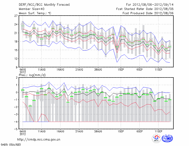 锡林浩特 (LAT:43.95 LON:116.07) 2012-08-06        预测