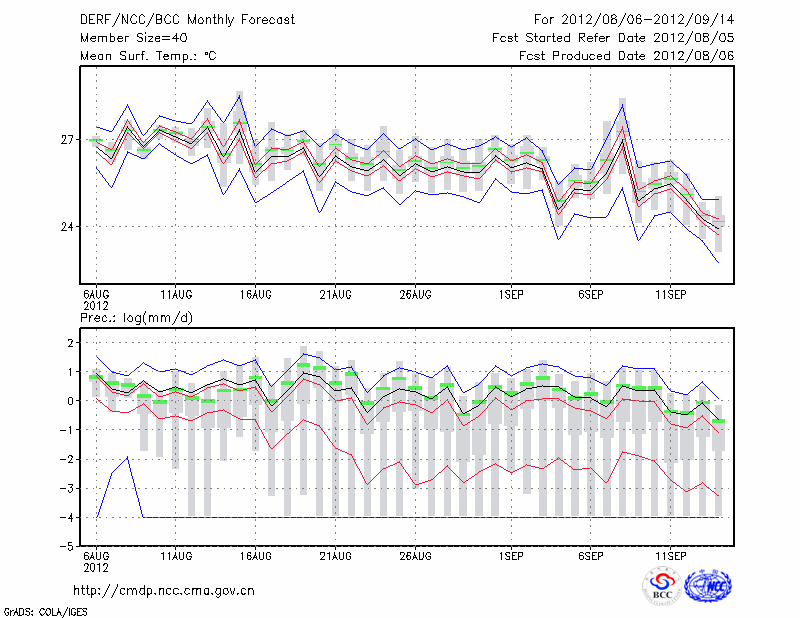 青 岛 (LAT:36.07 LON:120.33) 2012-08-06        预测