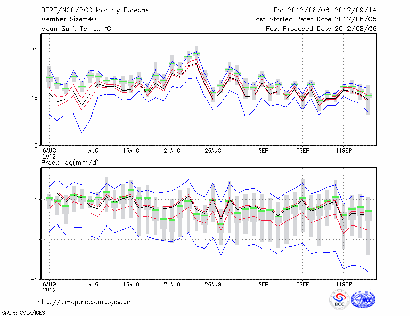 丽 江 (LAT:26.83 LON:100.47) 2012-08-06        预测