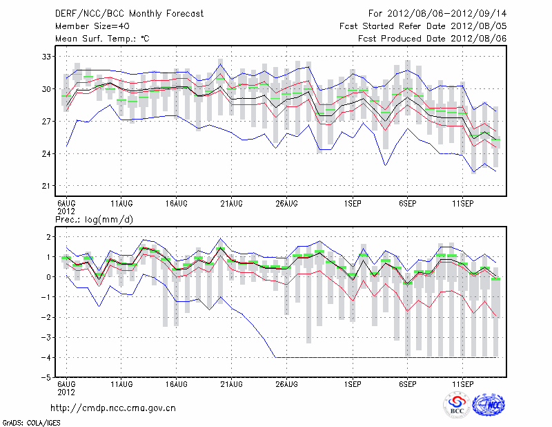 岳 阳 (LAT:29.38 LON:113.08) 2012-08-06        预测