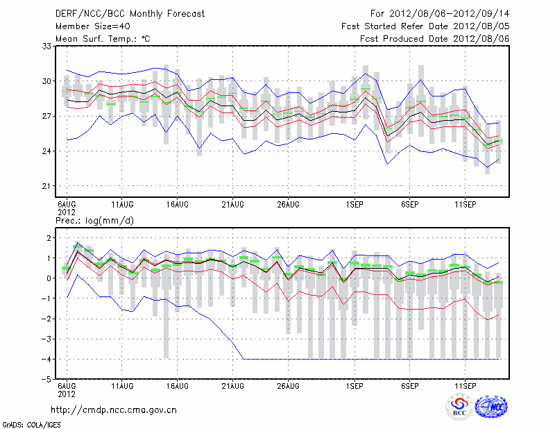 南 京 (LAT:32.00 LON:118.80) 2012-08-06        预测