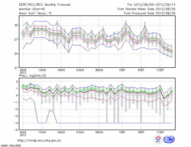 东 台 (LAT:32.87 LON:120.32) 2012-08-06        预测
