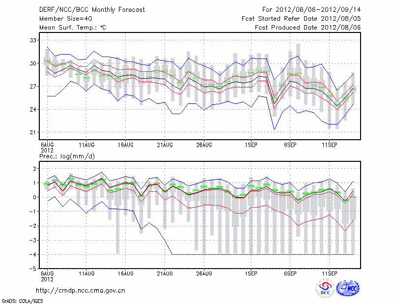 合 肥 (LAT:31.87 LON:117.23) 2012-08-06        预测