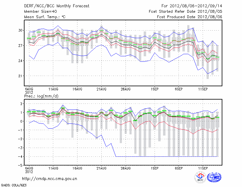 屯 溪 (LAT:29.71 LON:118.28) 2012-08-06        预测