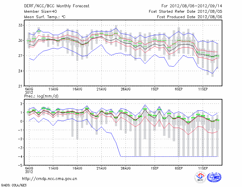 南 昌 (LAT:28.60 LON:115.92) 2012-08-06        预测