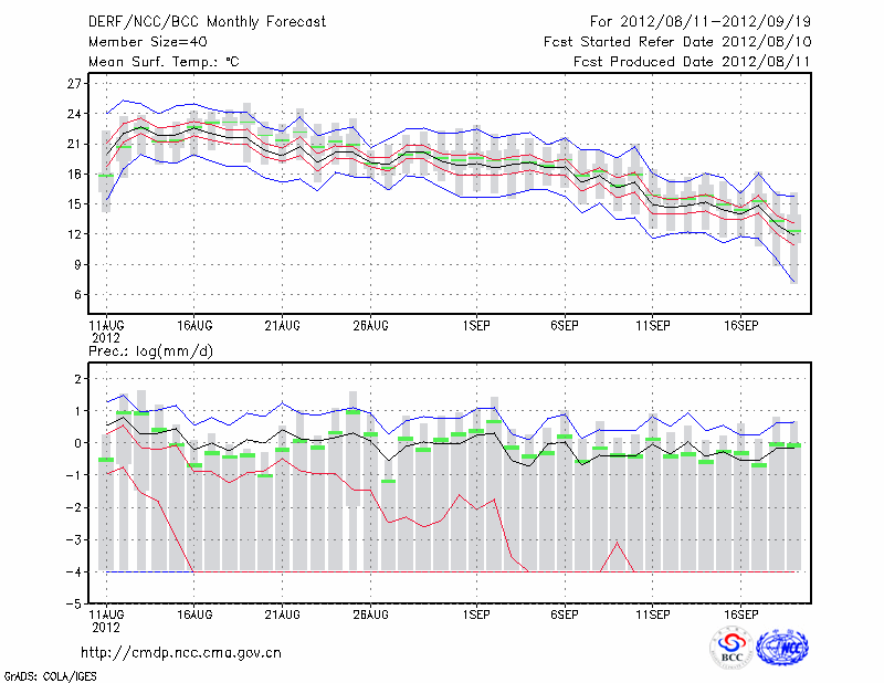 哈 尔 滨 (LAT:45.75 LON:126.77) 2012-08-11        预测