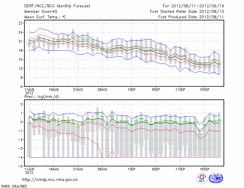 鸡 西 (LAT:45.28 LON:130.95) 2012-08-11        预测
