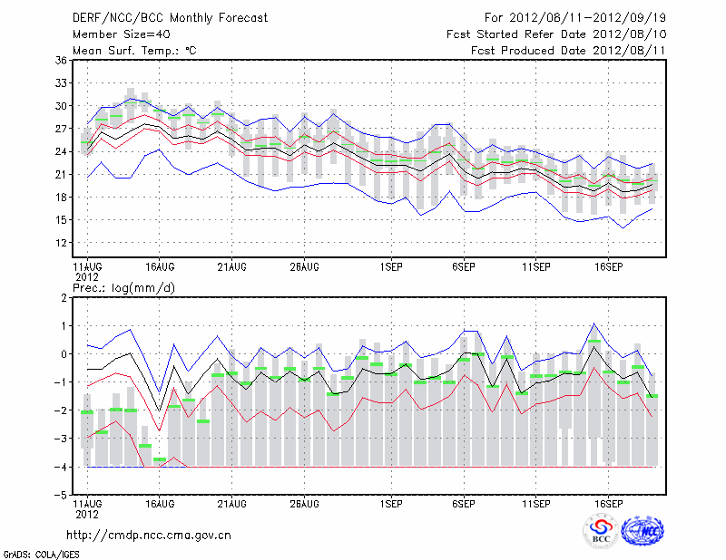 乌 苏 (LAT:44.43 LON:84.66) 2012-08-11        预测