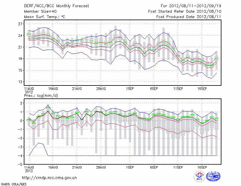延 安 (LAT:36.60 LON:109.50) 2012-08-11        预测
