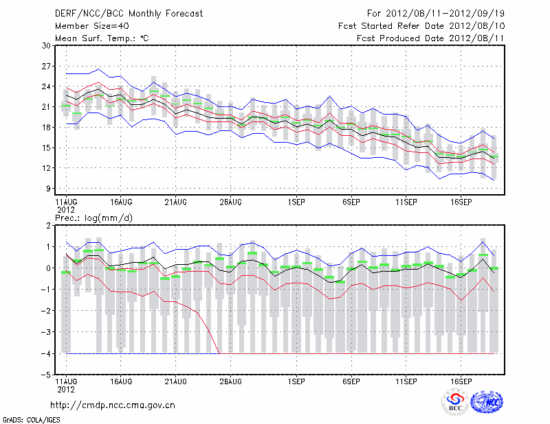 牡 丹 江 (LAT:44.57 LON:129.60) 2012-08-11        预测