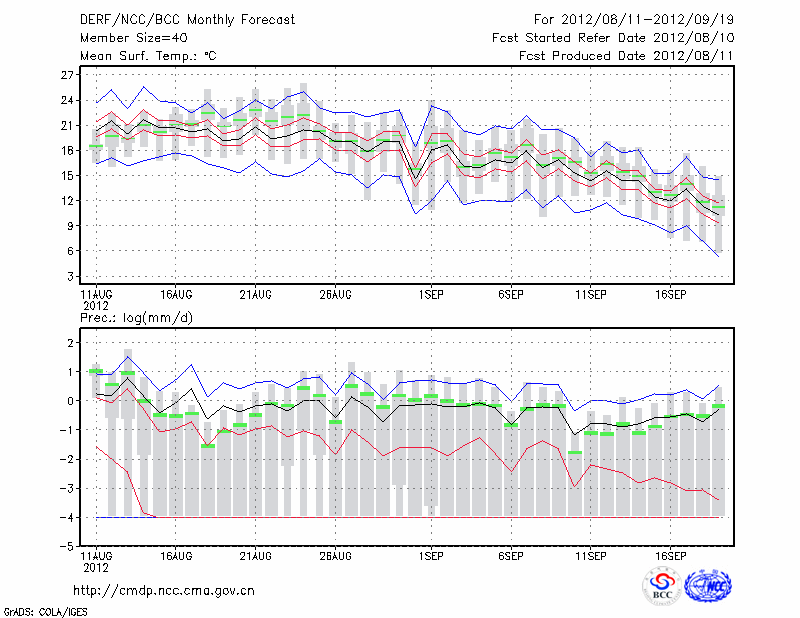 锡林浩特 (LAT:43.95 LON:116.07) 2012-08-11        预测