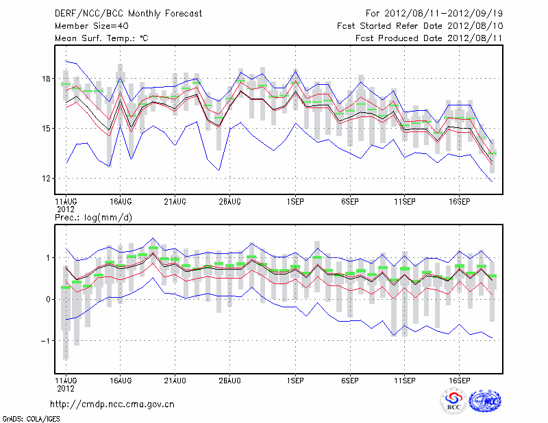 康 定 (LAT:30.05 LON:101.97) 2012-08-11        预测