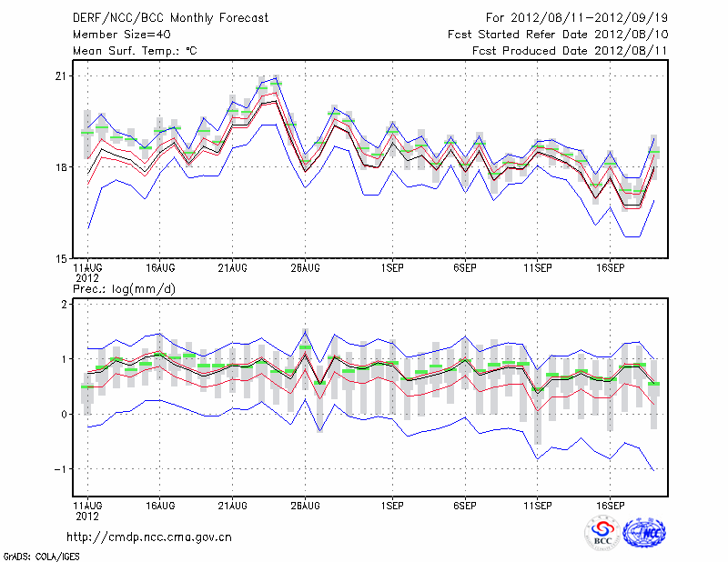 丽 江 (LAT:26.83 LON:100.47) 2012-08-11        预测