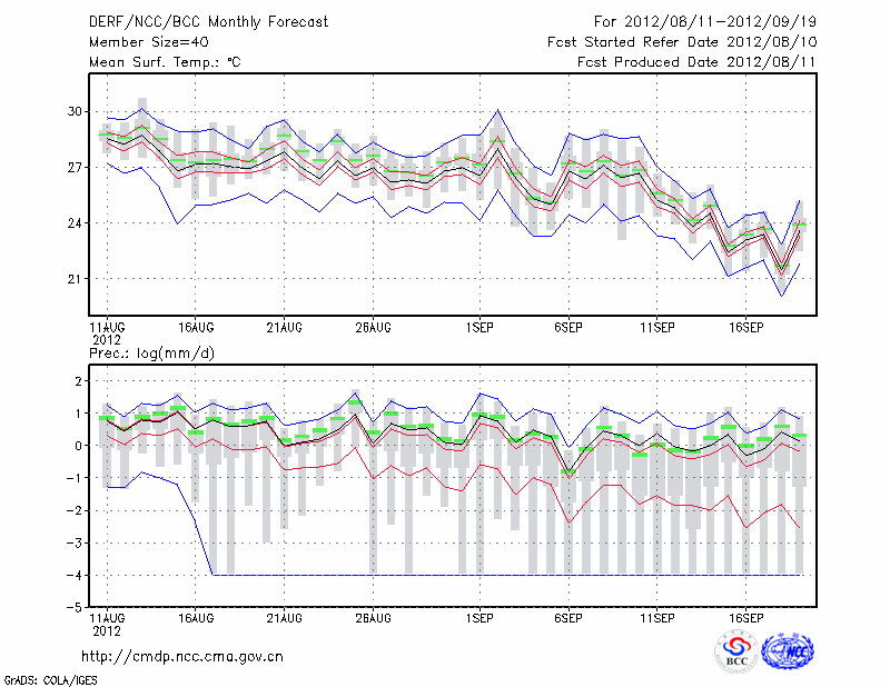 清 江 (LAT:33.60 LON:119.03) 2012-08-11        预测