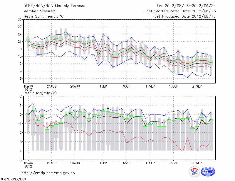 锡林浩特 (LAT:43.95 LON:116.07) 2012-08-16        预测