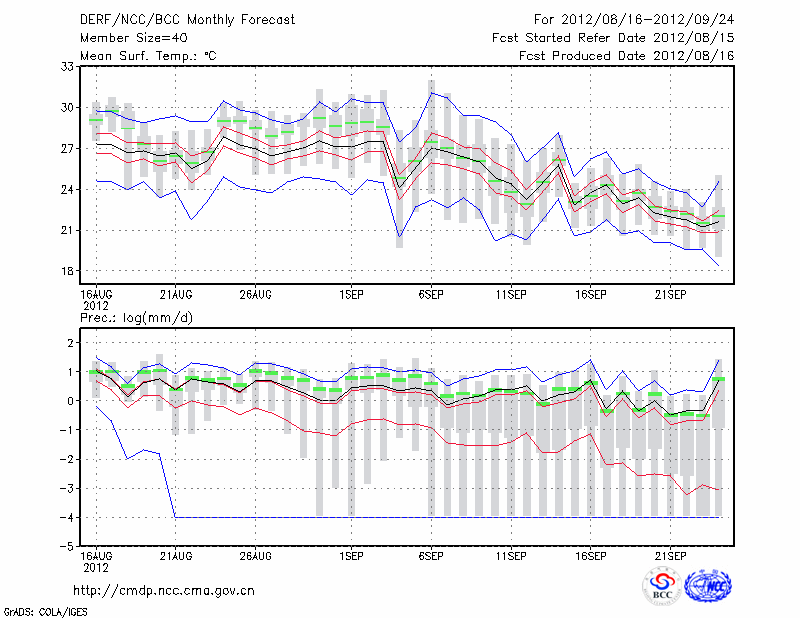 合 肥 (LAT:31.87 LON:117.23) 2012-08-16        预测