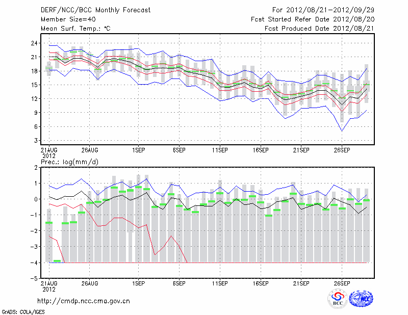 哈 尔 滨 (LAT:45.75 LON:126.77) 2012-08-21        预测
