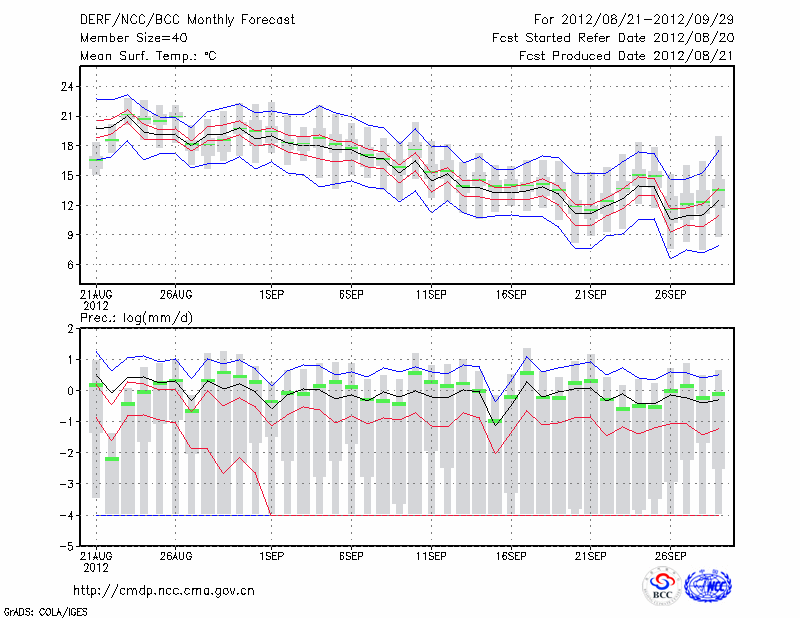 鸡 西 (LAT:45.28 LON:130.95) 2012-08-21        预测