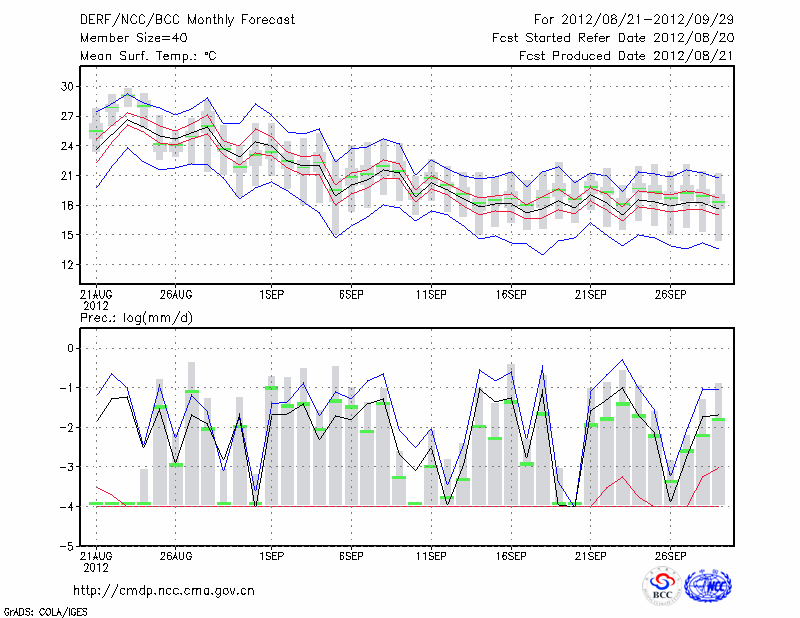 哈 密 (LAT:42.82 LON:93.52) 2012-08-21        预测