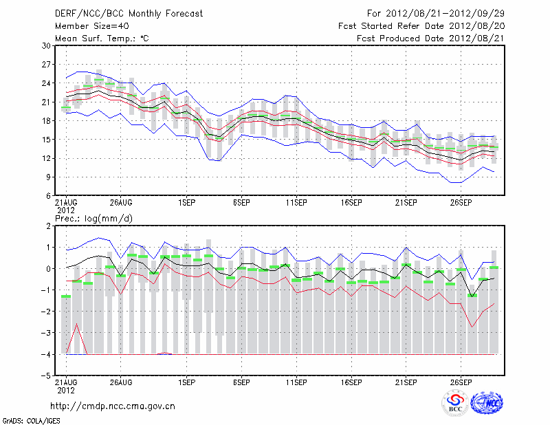 呼和浩特 (LAT:40.82 LON:111.68) 2012-08-21        预测