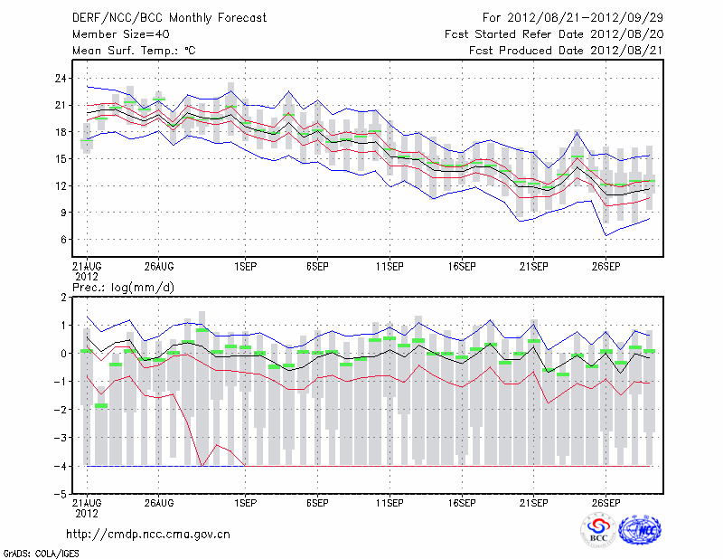 牡 丹 江 (LAT:44.57 LON:129.60) 2012-08-21        预测