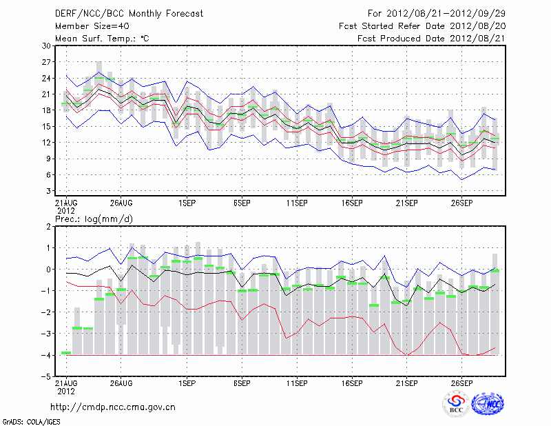 锡林浩特 (LAT:43.95 LON:116.07) 2012-08-21        预测