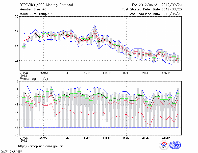青 岛 (LAT:36.07 LON:120.33) 2012-08-21        预测