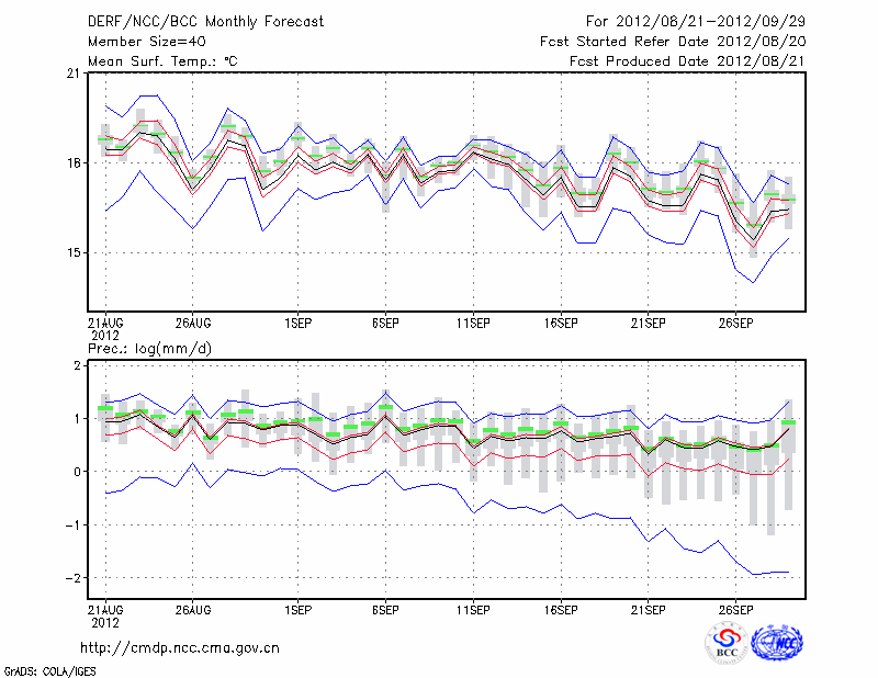 丽 江 (LAT:26.83 LON:100.47) 2012-08-21        预测