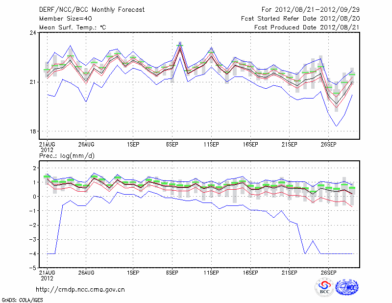 临 沧 (LAT:23.95 LON:100.22) 2012-08-21        预测