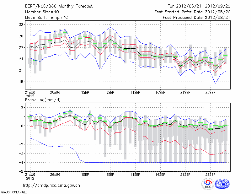 岳 阳 (LAT:29.38 LON:113.08) 2012-08-21        预测