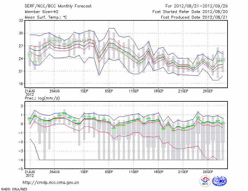 合 肥 (LAT:31.87 LON:117.23) 2012-08-21        预测