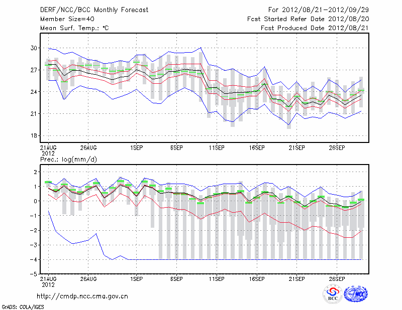 屯 溪 (LAT:29.71 LON:118.28) 2012-08-21        预测