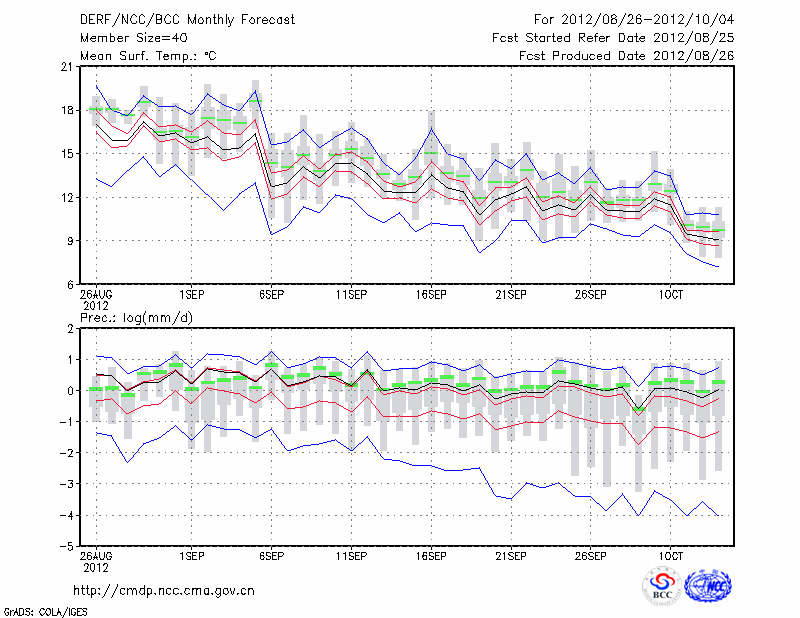 西 宁 (LAT:36.62 LON:101.77) 2012-08-26        预测